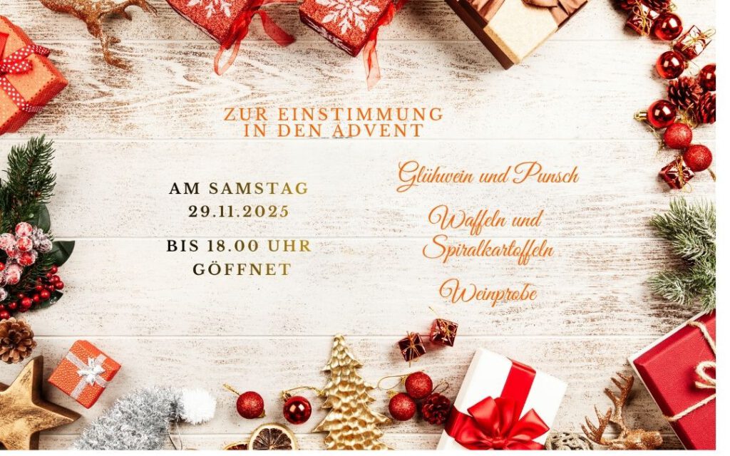 Samstag 29.11.2025 haben wir bis 18.00 Uhr geöffnet